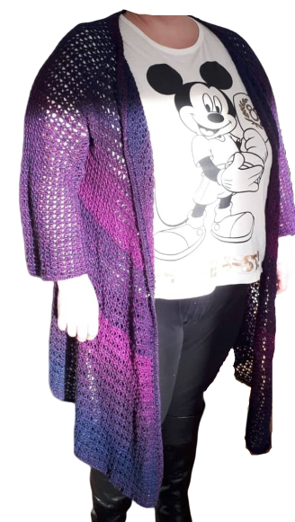 Die Anleitung ist sowohl schriftlich, als auch in Häkelschrift in der Anleitung zu finden. Anfängertauglich! Die Jacke kann in allen Größen gehäkelt werden.