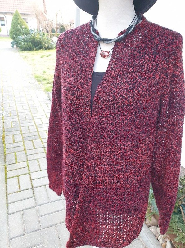 Und wieder eine Jacke :-) Ich wurde von einer lieben Freundin gebeten, "mach doch mal was, wo die Zipfel so runterhängen".... Ok, und ich hab auch noch so eine im Schrank gebraucht. ;-)