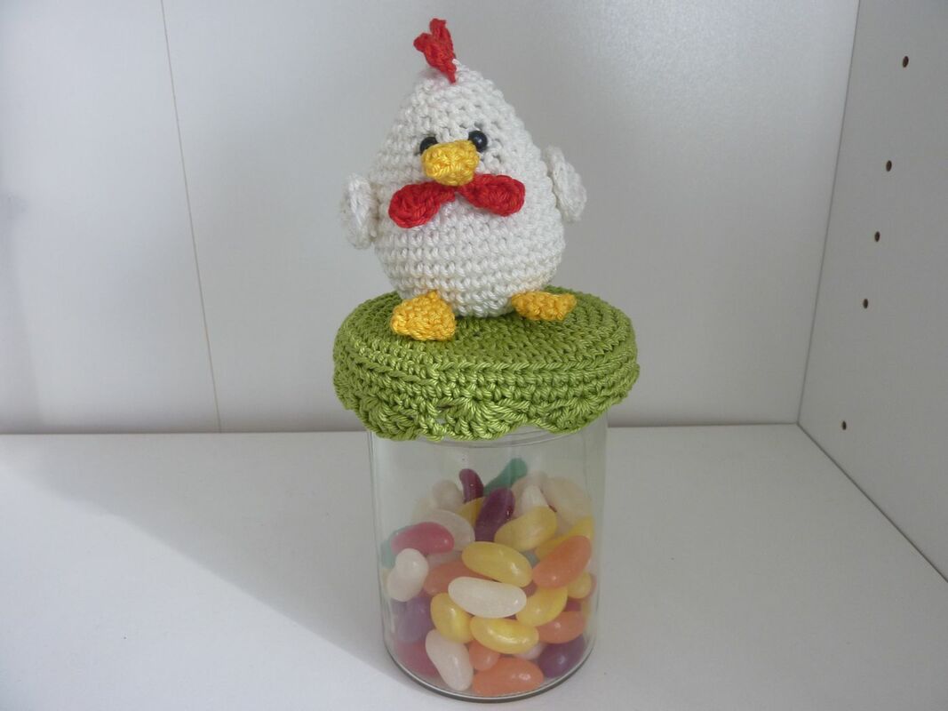 Das kleine Huhn auf dem Deckel überwacht jeden Inhalt: egal ob Süssigkeiten, Armbänder oder kleine Erinnerungen. So ist der Deckelbezug "Huhn" eine schöne Geschenkidee - nicht nur zur Osterzeit.