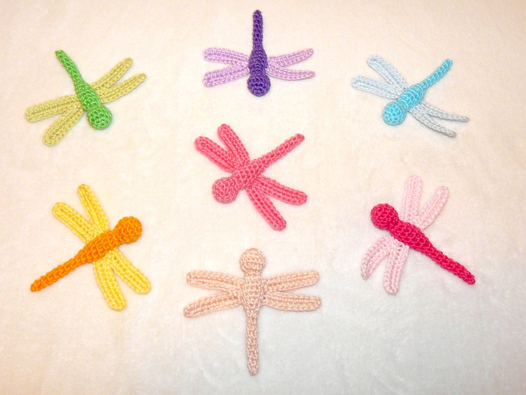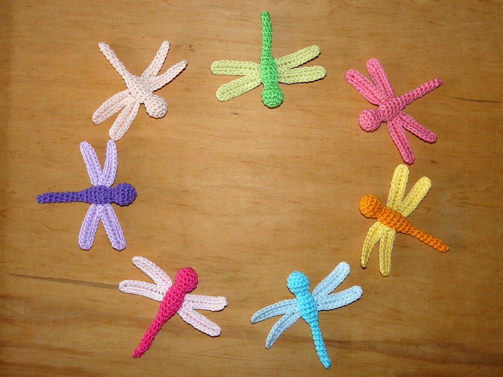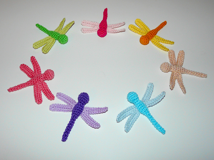 Je nach Garn- und Häkelnadelstärke variiert die Größe von den Libellen.