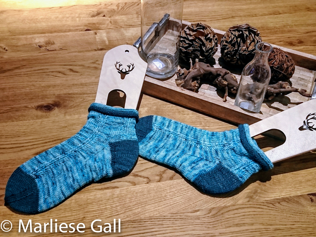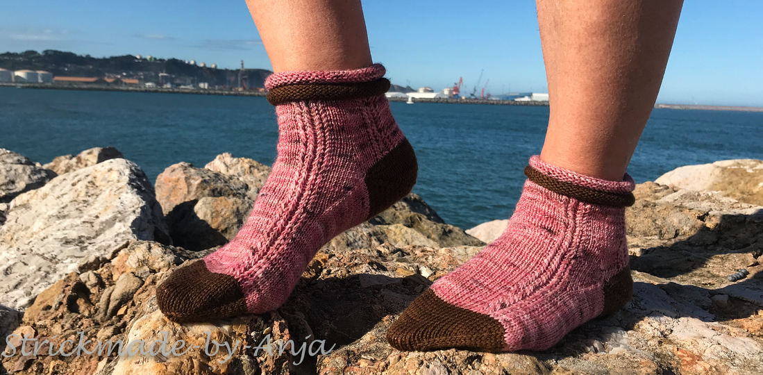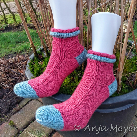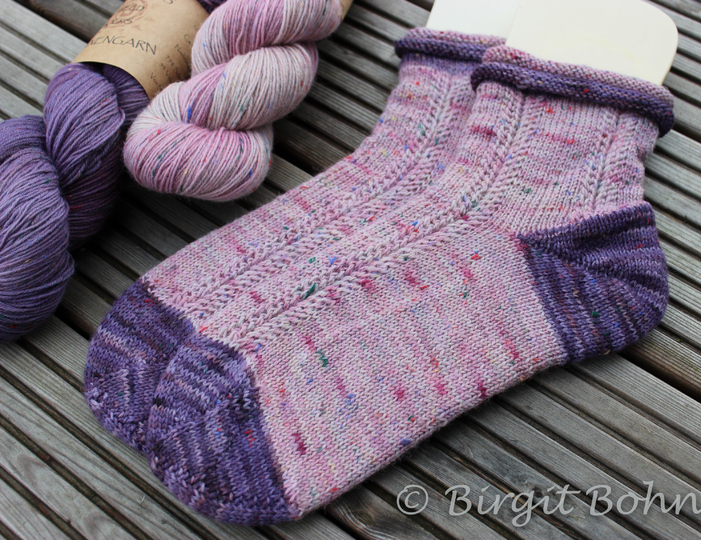 Die Shadow-Wrap Ferse wird nicht beschrieben, sondern nur auf das Video verwiesen. Aber jede andere Ferse ist auch machbar.