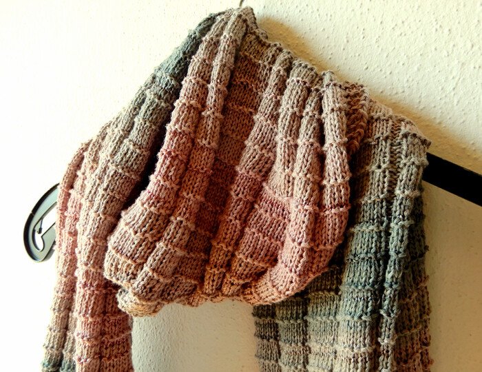 Dieser Schal ist einfach zu stricken. Er besteht aus rechten und linken Maschen. Man kann dünnes Baumwollgarn verwenden (wie ich es verwendet habe), oder irgendein anderes Garn nach Belieben.
