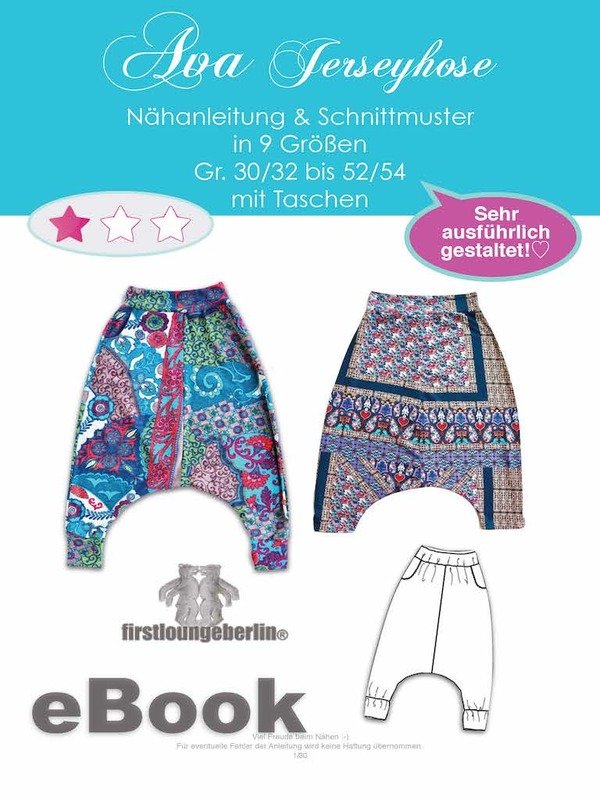 Die Angefertigten Produkte aus unseren Schnitten dürfen privat UND gewerblich genutzt werden. Der gewerbliche Verkauf der angefertigten Produkte ist unbegrenzt im Rahmen eines Kleingewerbes von Einzelstücken und Kleinserien (keine Massenproduktion) erlaubt unter der Nennung unseres Namens z.B. „Schnitt und Design von firstloungeberlin“. Die eBooks und die Schnitte dürfen nicht vervielfältigt, verkauft, kopiert, weiter gegeben, abfotografiert oder in irgendeiner Weise veröffentlich werden.Du kannst fast alle dehnbaren Stoffe, die querelastisch sind nutzen.