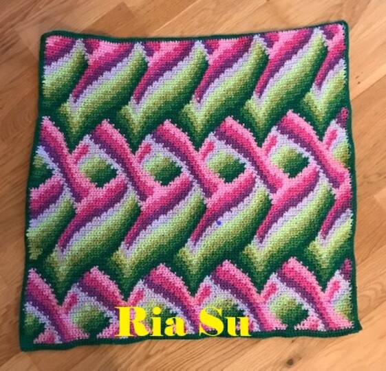 Eine Arbeit mit vielen Möglichkeiten. Mit 3D Effekt ein ganzer toller Blickfang. Für Kissen, Decken und Taschen. Mit feinem Garn kann es auch als Abendtasche oder Nessesaire verwendet werden. Zählmuster.