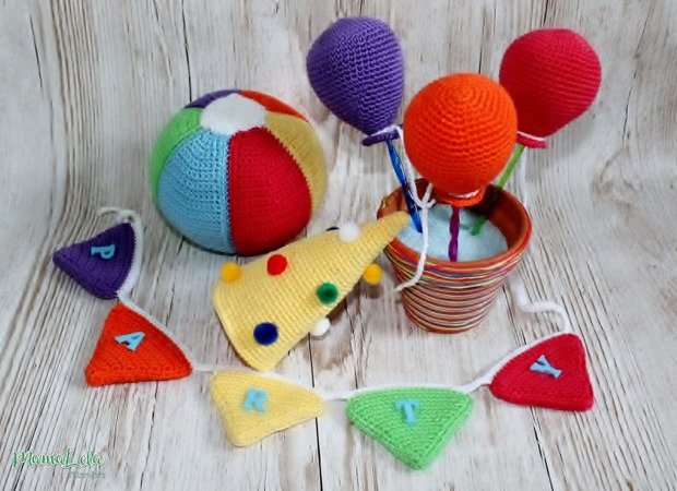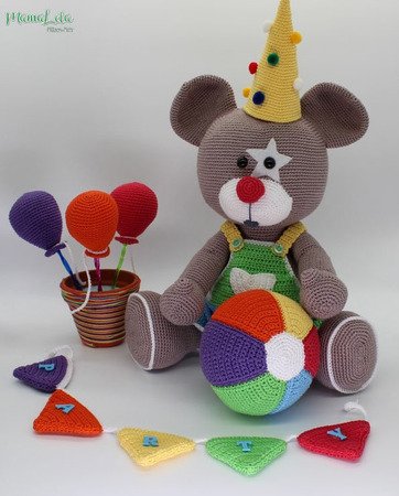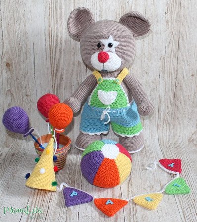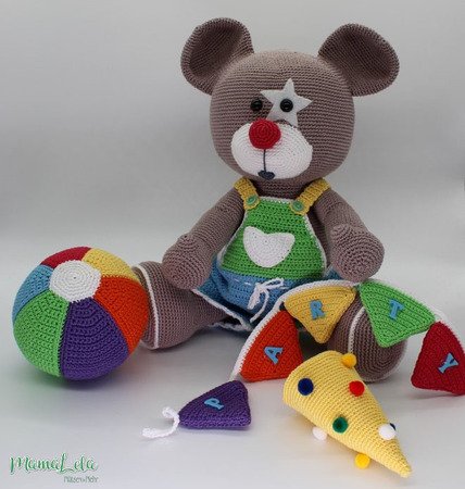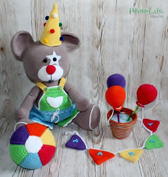 Mit dieser Häkelanleitung könnt ihr euch den im Artikelbild gezeigten Party-Teddy zaubern.
