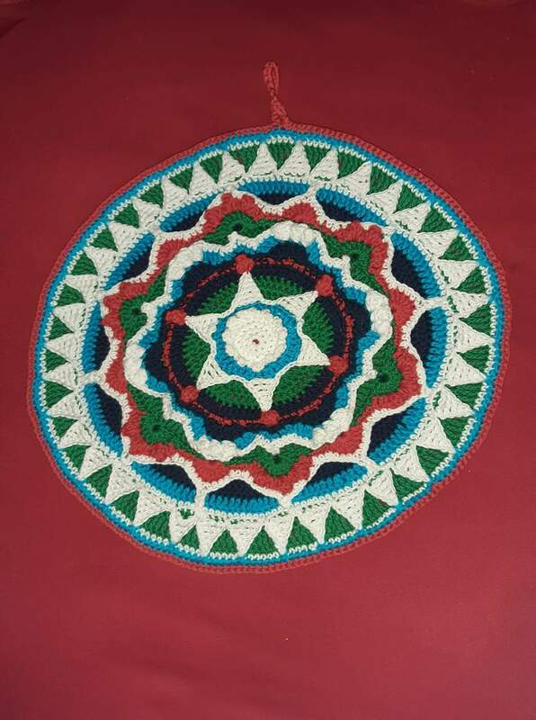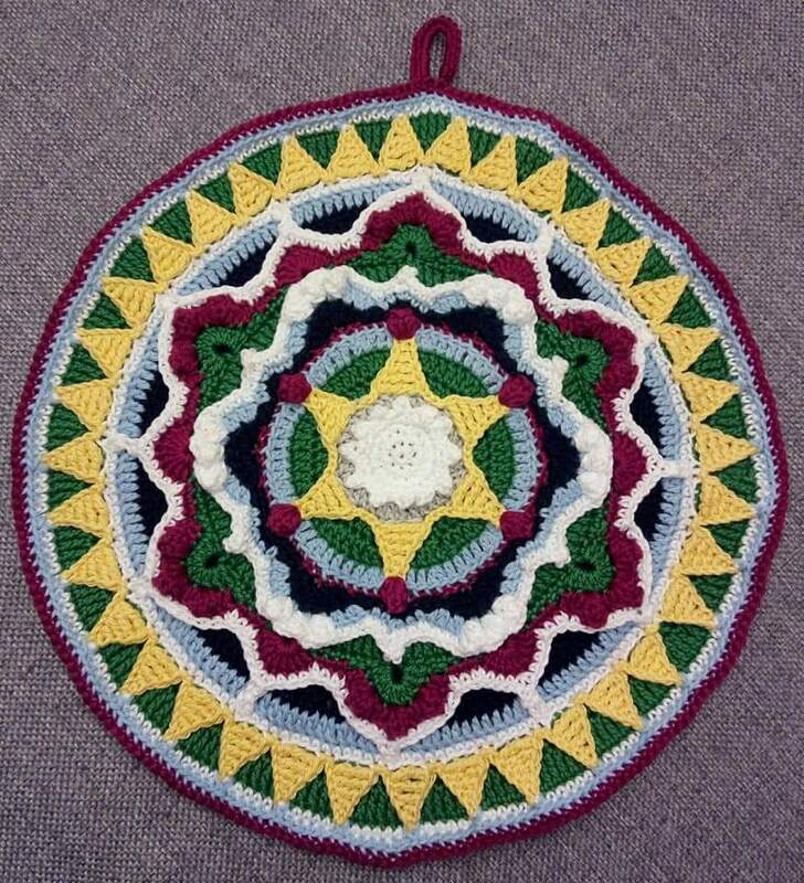 Im Sommer letzten Jahres hatte ich die Idee meine Küche mit dekorativen, nützlichen Elementen dekorieren zu wollen. So entstand die Idee zu einem Topflappen-Set in Form von vier Mandalas.