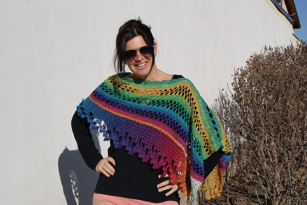Traumhaft schönes Tuch, das jedes Outfit zu etwas Besonderem macht! Ob zusammen gehäkelt oder nicht, es kann je nach Geschmack gearbeitet und getragen werden.