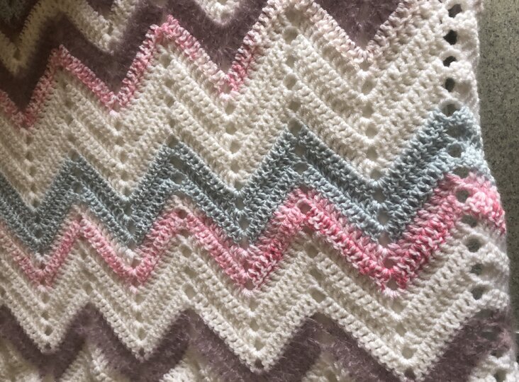 Diese Kuscheldecke für Babies ist der absolute Hingucker. Die Decke ist schnell gehäkelt , da die Arbeit mit doppeltem Faden erfolgt. Sie ist für Mädchen und Jungs geeignet, da die Farben für beide geeignet sind.