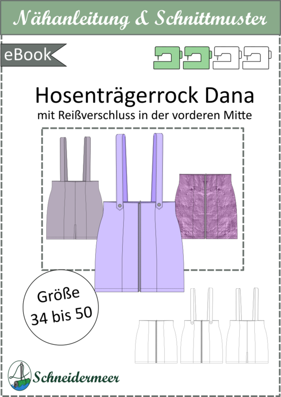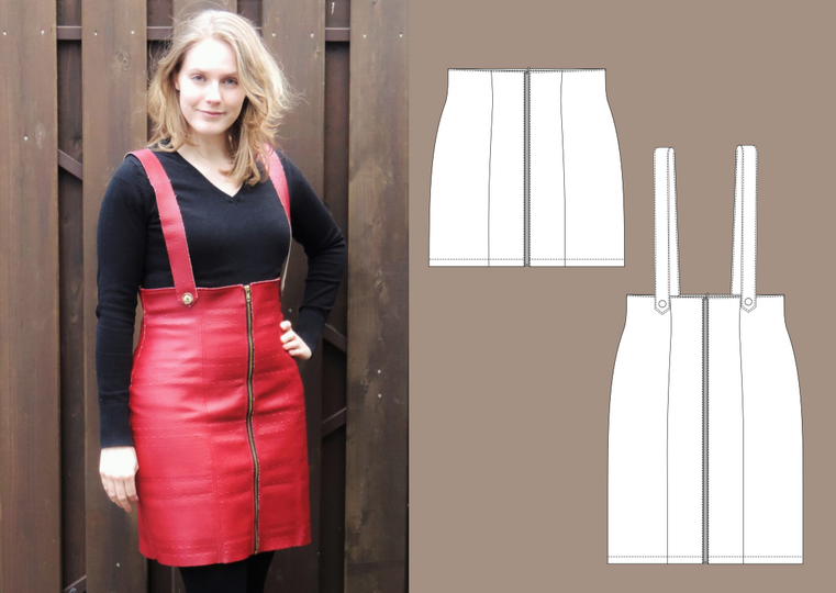 Das Modell „Dana“ ist ein enger, gerader Rock mit Taillenerhöhung. Geschlossen wird der Rock mit einem langen, teilbaren Reißverschluss in der vorderen Mitte. Dana kannst du mit oder ohne Hosenträger nähen.