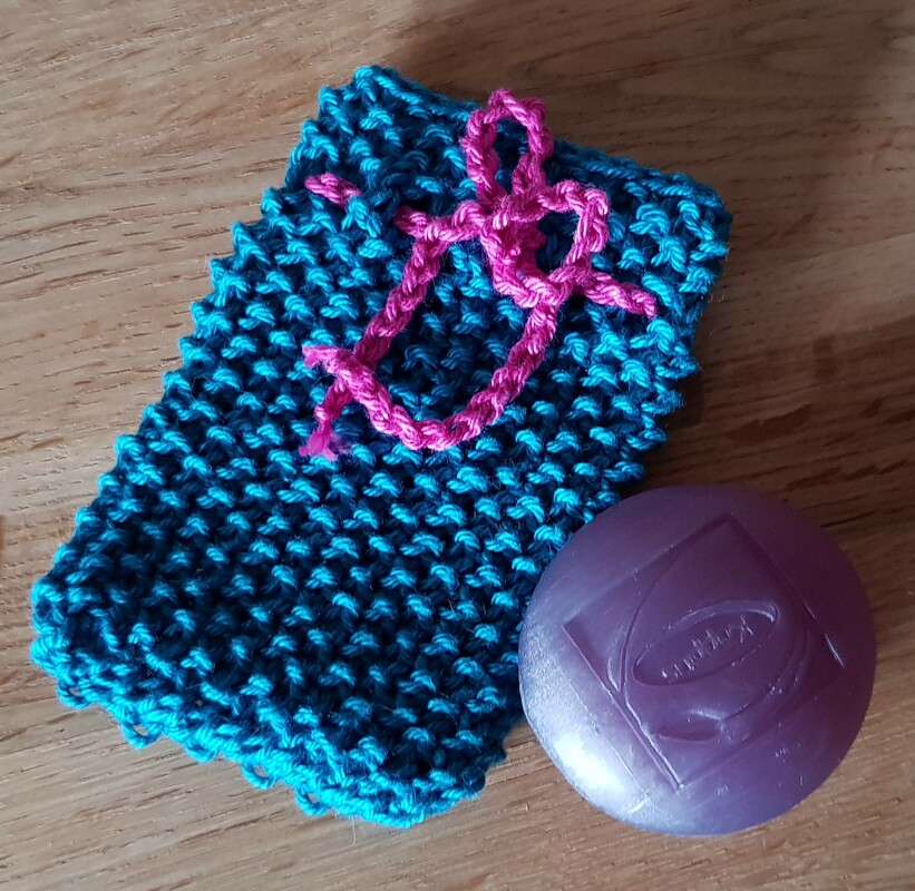 Mit dieser Anleitung kannst du einen Waschhandschuh, Waschlappen und ein Seifensäckchen