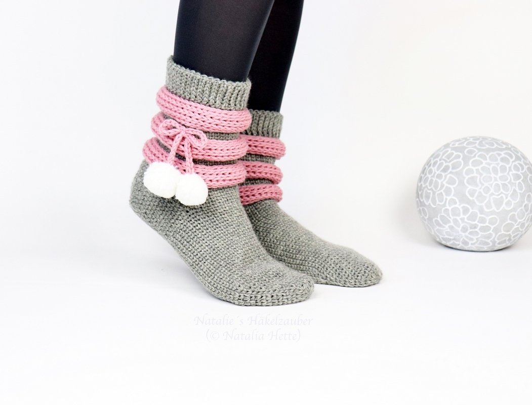 Weitere Häkelanleitungen für Socken und Hausschuhe finden Sie hier: https://www.crazypatterns.net/de/users/view_collection/1853/socken-hausschuhe-handschuhe-fuer-erwachsene