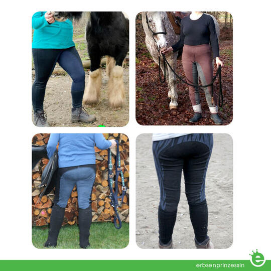 Du kannst nach dem Reithosen-Schnittmuster natürlich auch eine Freizeit-Hose / einfache Reitleggings nähen. Lasse dafür den Reißverschluss weg und nähe ein Gummibündchen an.