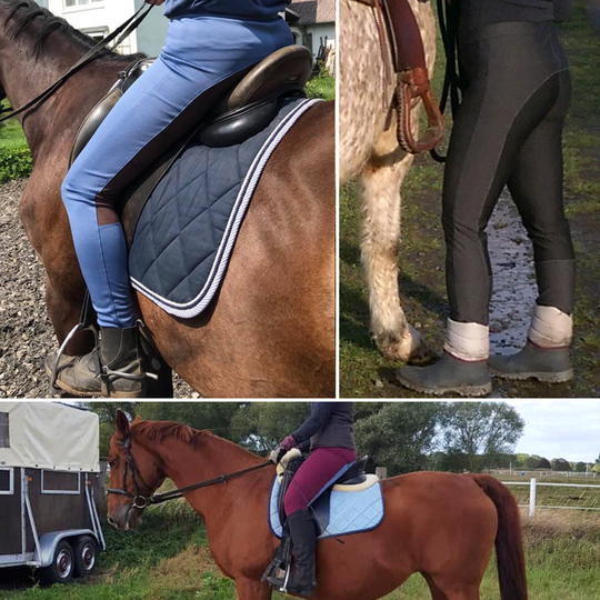 • Die Reithose wird aus dehnbaren, bi-elastischen Stoffen genäht.