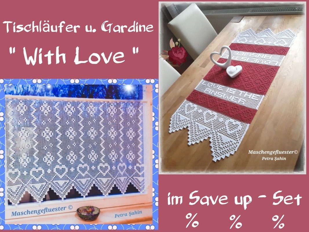 Gardine " With Love " und Tischläufer "With Love " zusammen im Save up - Set