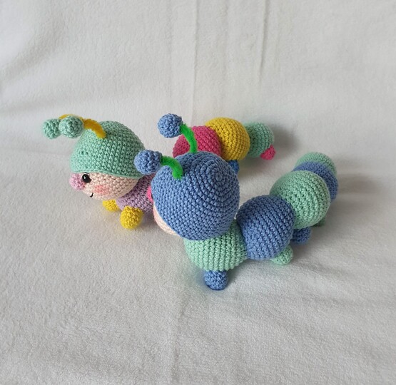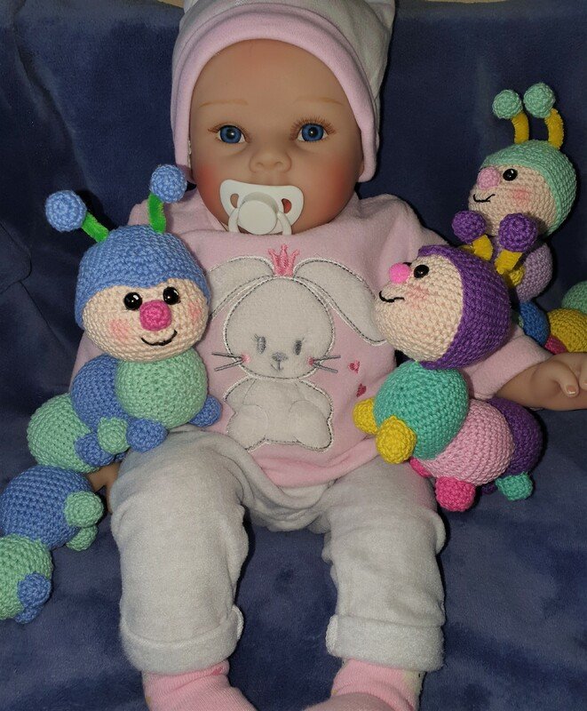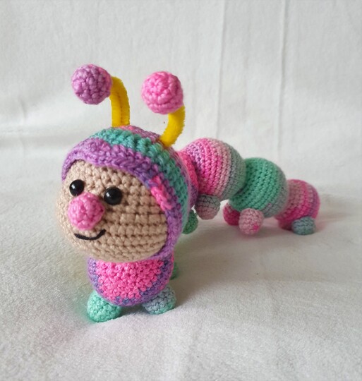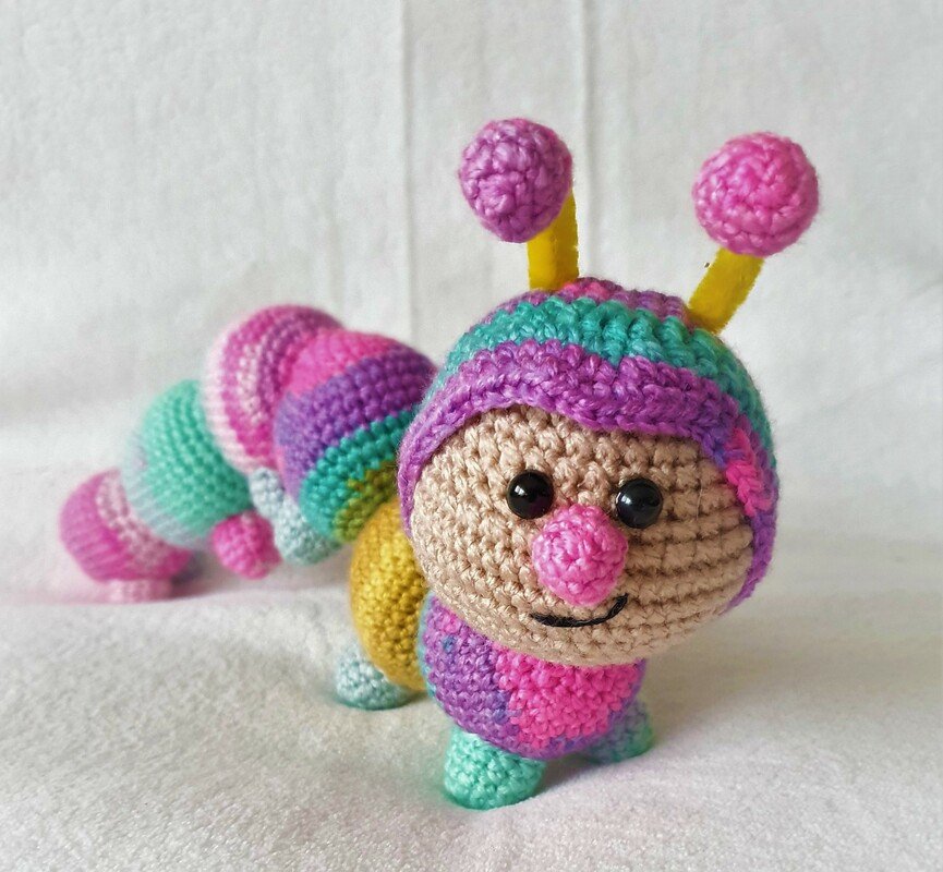 Rudi , die Resteraupe eignet sich optimal zur Verwertung kleiner Wollreste egal ob Baumwollgarn oder Acrylgarn.