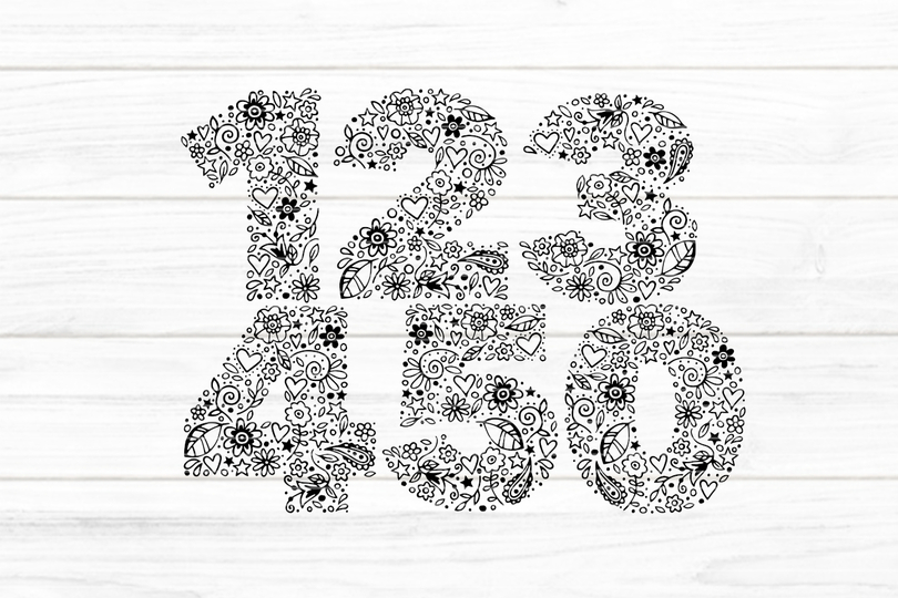 Eine Plotterdatei mit schönen Zahlen die aus Blumen und Blättern bestehen.