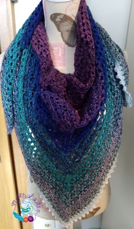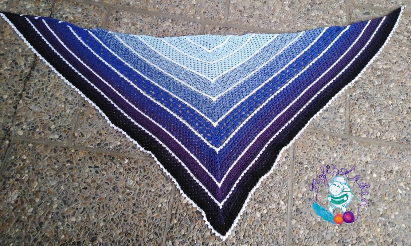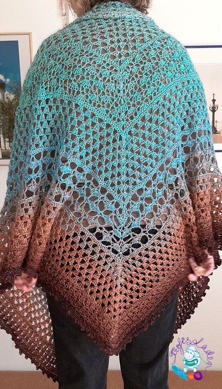 Das Tuch wird in Reihen gehäkelt. Nach jeder Reihe wird gewendet.