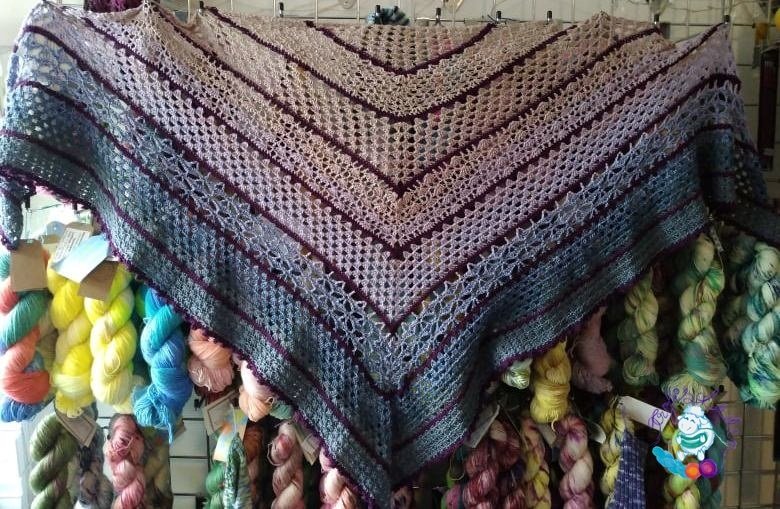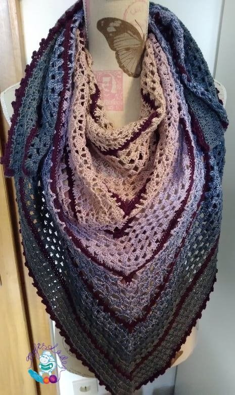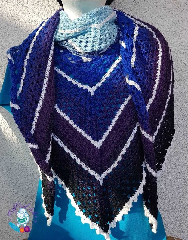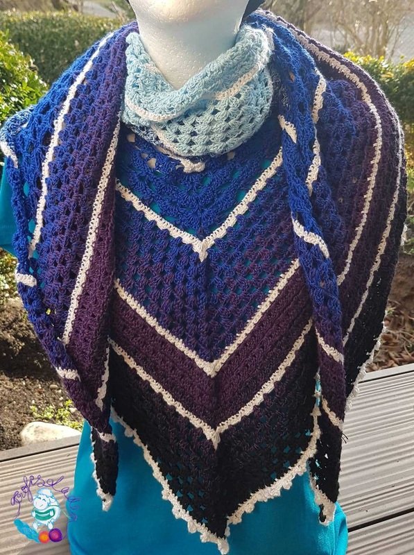 Das Tuch wird mit zwei 3‐fädigen Bobbel gehäkelt.