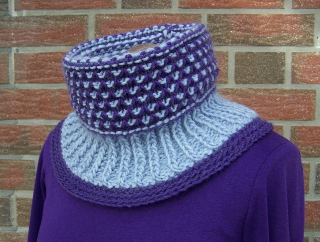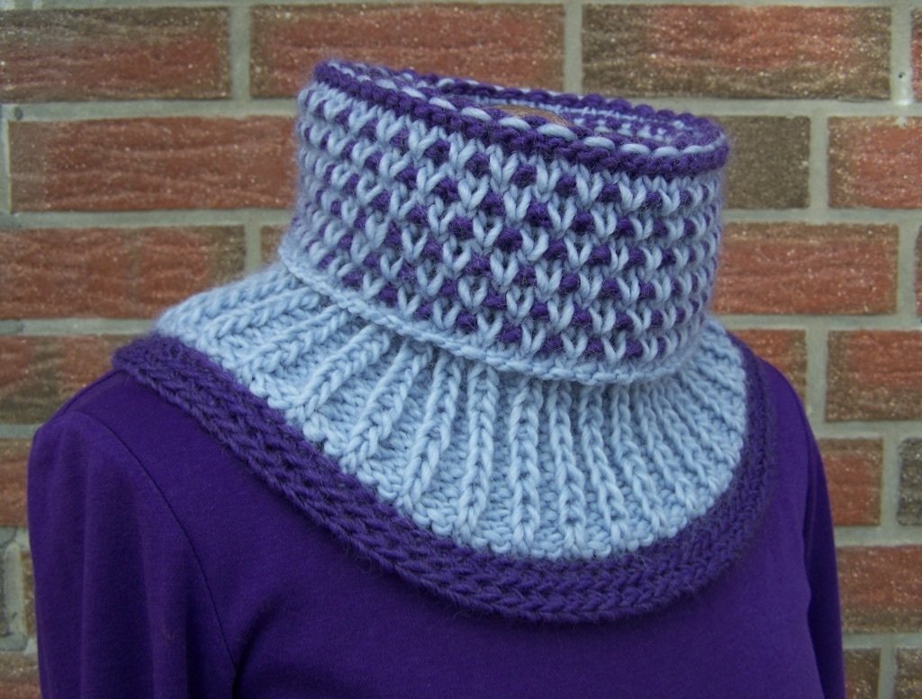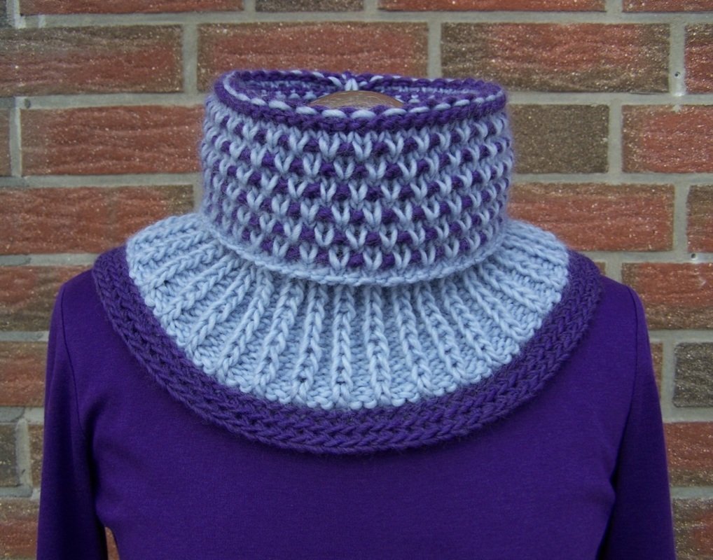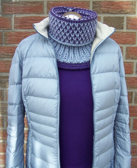 Außerdem ist die Fertigstellung des Kragenschals (Anhäkeln der Zierblende) bebildert.
