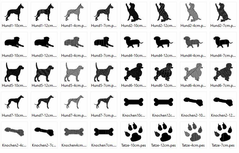 ♥ lauter süße Hunde als einfache Silhouetten Stickdateien ♥