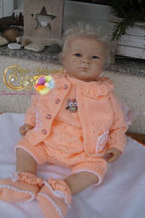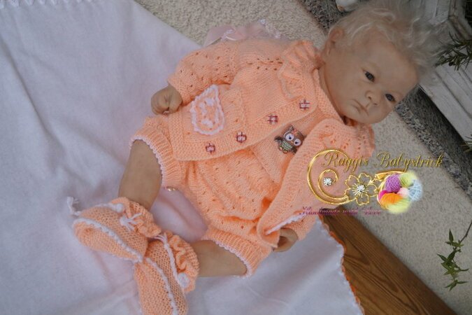 Strickanleitung für ein wunderschönes Set, 3-teilig für Babys & Reborns, Gr. 56 Das Set ist aus Babysoftwolle Nd. - Nr. 2,75 gestrickt. Die Anleitung ist sehr genau beschrieben und mit vielen Fotos versehen. Du kannst mit dieser Schritt – für – Schritt – Anleitung dieses Set gut nacharbeiten.