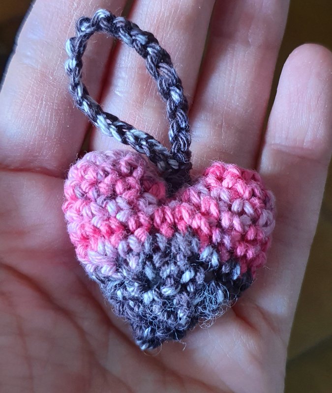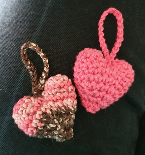 Die Herzen werden ca. 3 cm groß. Mit dünnerem Garn werden sie natürlich kleiner, mit dickerem größer.
