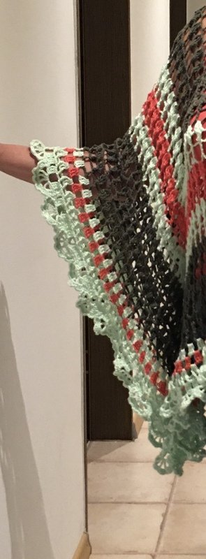 Insgesamt werden ca. 1950-2000m Garn benötigt. Gehäkelt wird mit einer 4.5-5,5mm Häkelnadeln. (Bambusnadel) Das Maschenbild sollte nicht so eng sein, damit der Poncho schön lässig fällt und nicht zu steif wird.