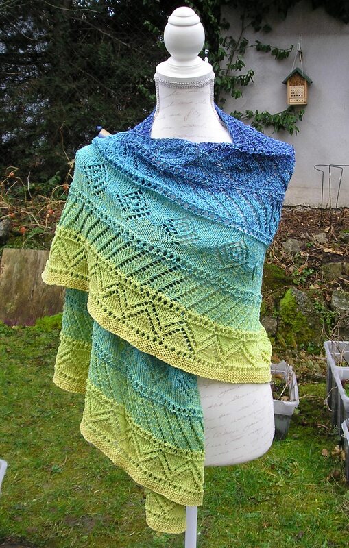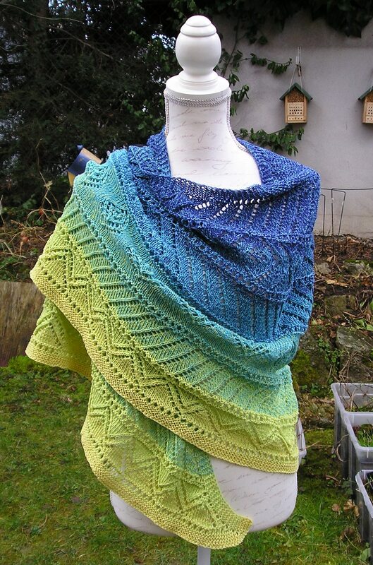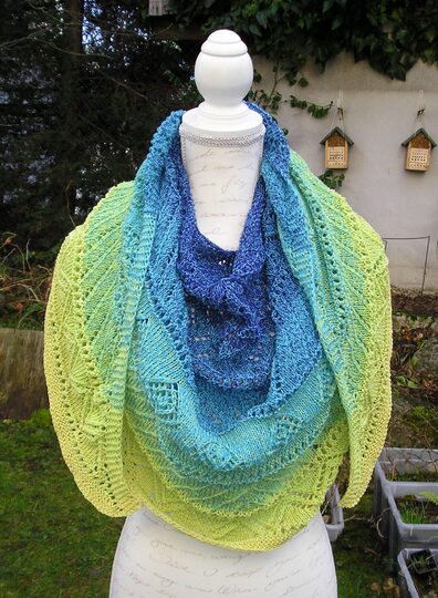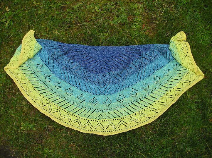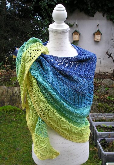 Strickanleitung Halbrundtuch "Sonnenhimmel" Mustermix aus mehreren Lochmustern