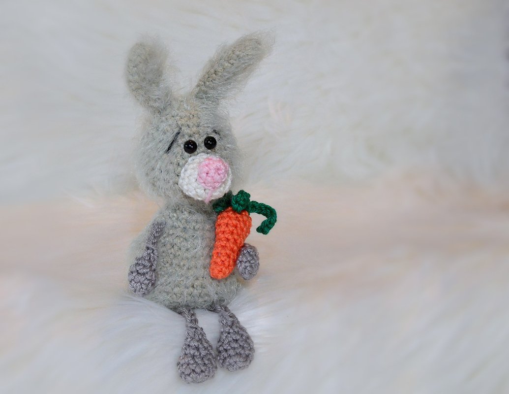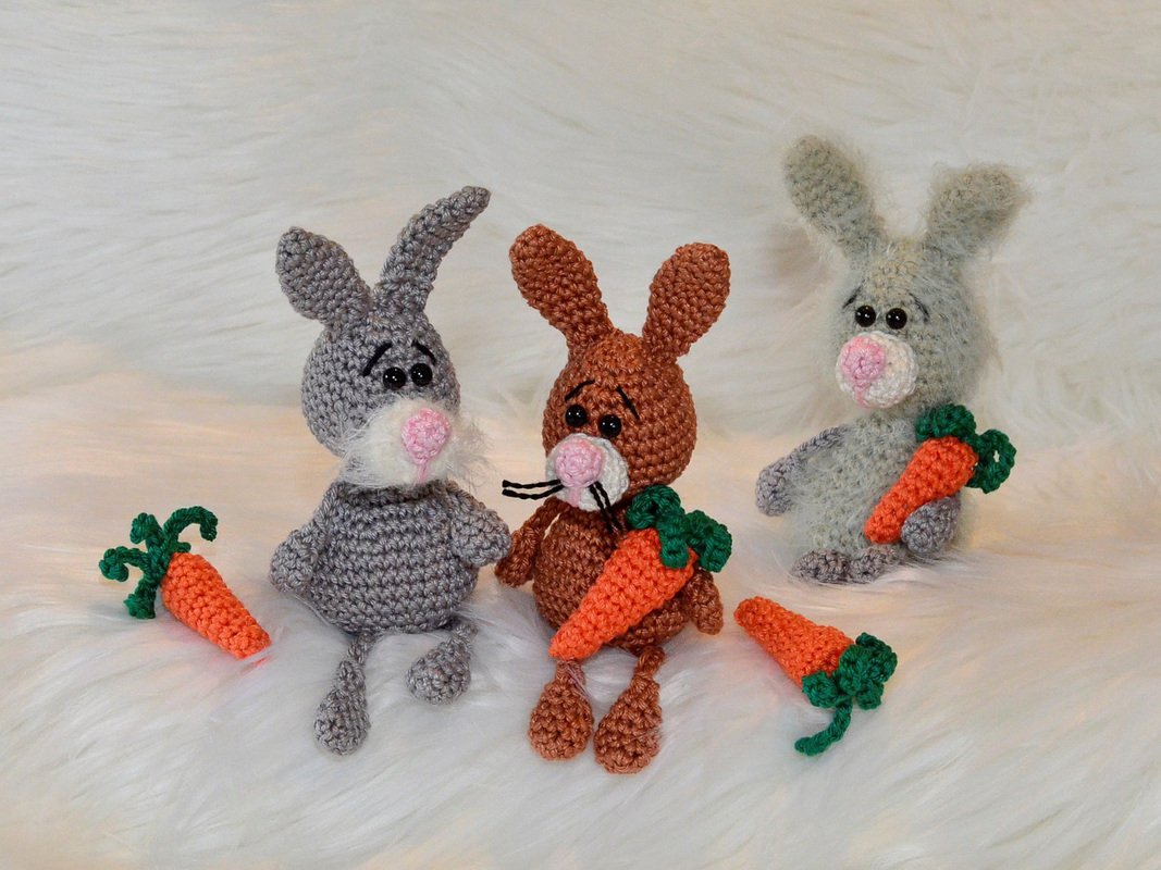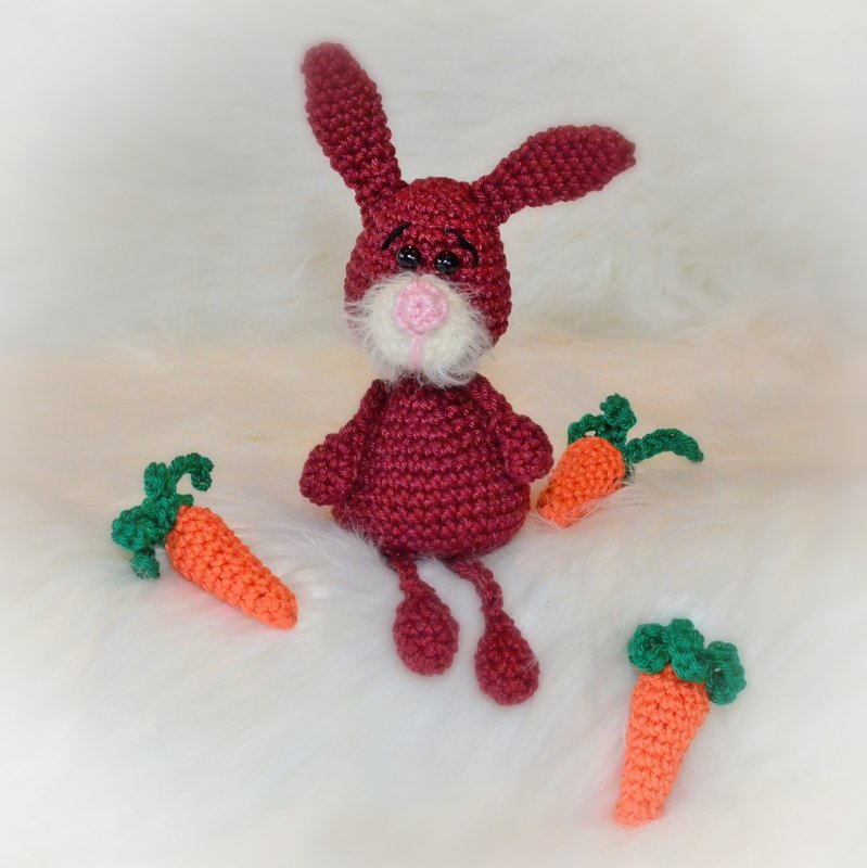 Mit dieser Anleitung zeige ich dir, wie du diese schönen Hasen mit kleiner Karotte häkeln kannst.
