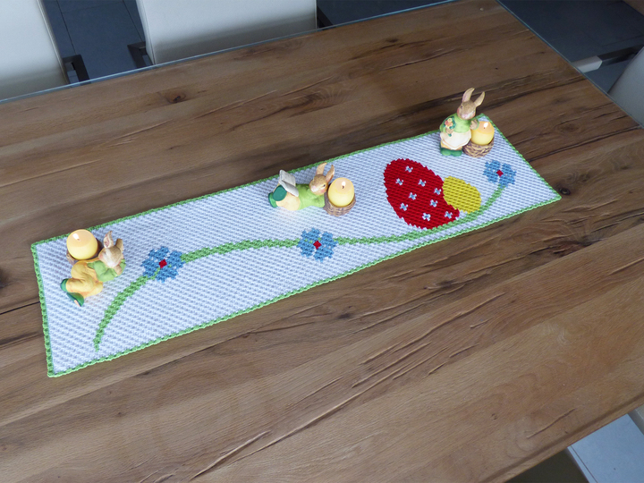 Dieser dekorative Tischläufer wurde mit der Corner-to-Corner (C2C) Technik gehäkelt.