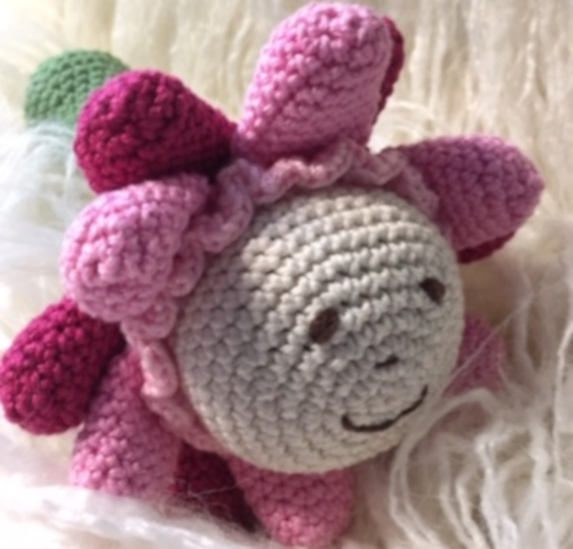 Du erhältst eine Häkelanleitung in PDF-Format für die zuckersüße Rassel Little Flower. Die Anleitung ist einfach gehalten und sollte auch für Anfänger machbar sein.