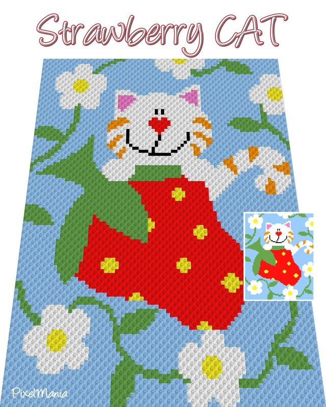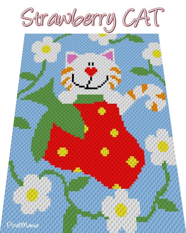 Strawberry Cat ist ein digitales Diagramm, das für verschiedene Häkeltechniken verwendet werden kann, wie Ecke zu Ecke = C2C, Mini C2C, feste Maschen, halbe Stäbchen, Stäbchen, tunesisch häkeln, Bobble Stitch. Alternativ kann dieses Produkt auch für Kreuzstich, Stricken, Hamma-Perlen, Kunststoff-Leinwand und andere Projekte verwenden werden.