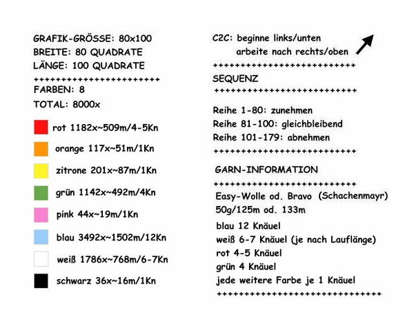 Die genaue Anleitungen zur HÄKELTECHNIK C2C (Ecke zu Ecke) erhältst du GRATIS in meinem Shop!!!