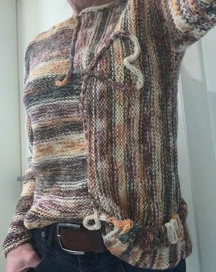 Auch wenn der Pullover vielleicht kompliziert aussehen mag, ist er bereits von Anfängern mit Strickgrundkenntnissen sehr leicht nachzuarbeiten, da er nur aus einem Glatt-Links-Muster besteht (zzgl. Kenntnisse im Maschenanschlagen, -abnehmen und Vernähen). Eine ausführliche Anleitung und Fotos machen die Fertigstellung sehr einfach.