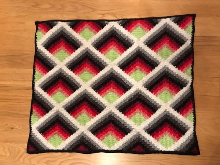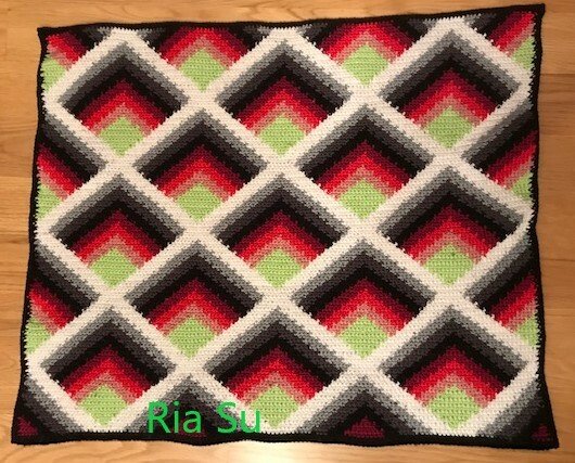 Eine Arbeit mit vielen Möglichkeiten. Mit 3D Effekt ein ganzer toller Blickfang. Für Kissen, Decken und Taschen. Mit feinem Garn kann es auch als Abendtasche oder Nessesaire verwendet werden.