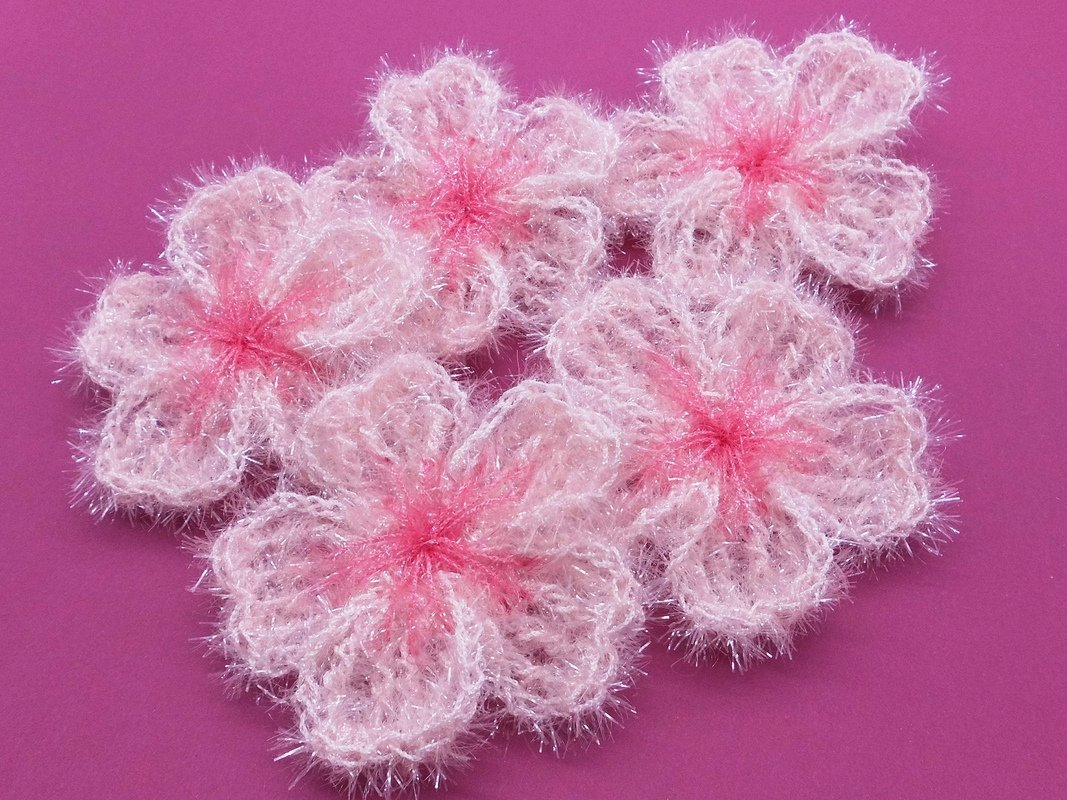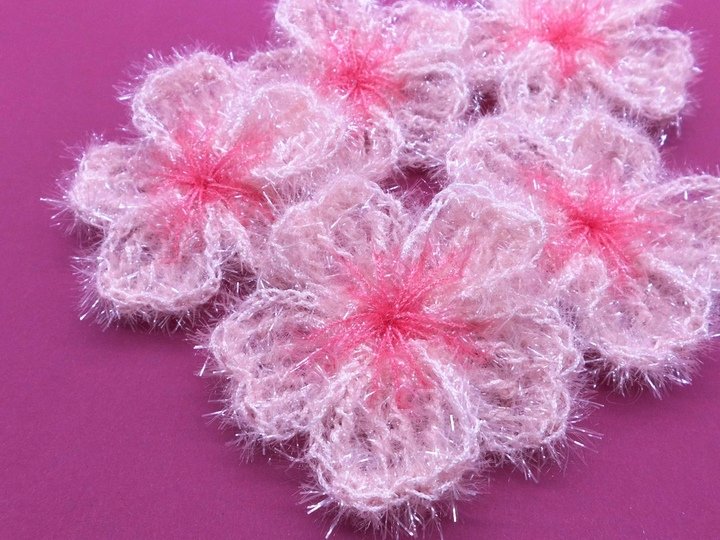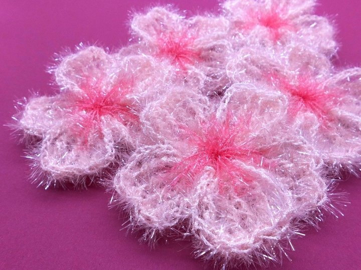 Aus Schwammgarn mit Häkelnadel 4,5 gehäkelt, werden die Kirschblüten Waschpads ca. 9 x 9 cm groß.