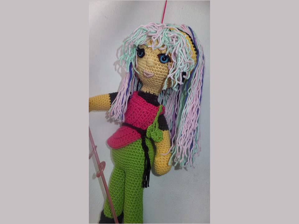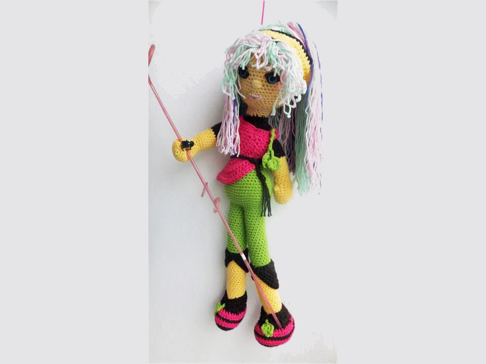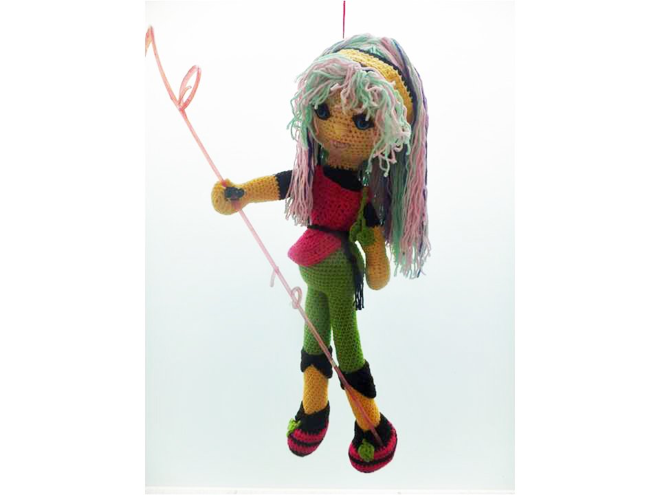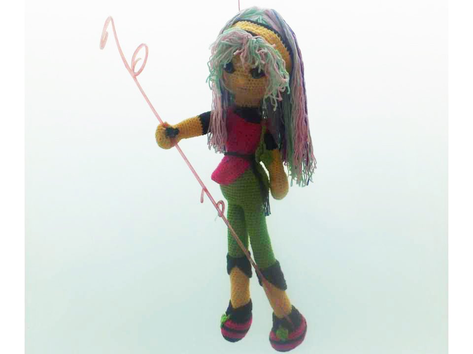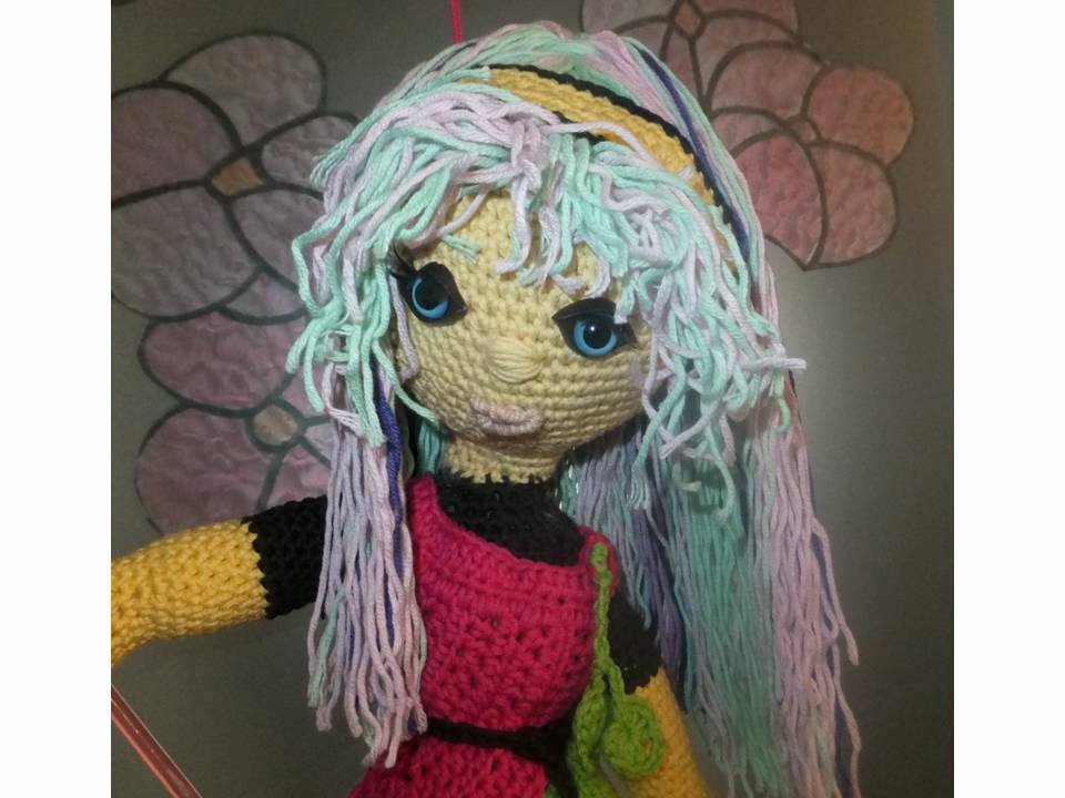 Diese Puppe wird etwa 50 cm groß. (Bei Verwendung gleicher Wolle, Abhängig auch von Deiner Häkelfestigkeit)