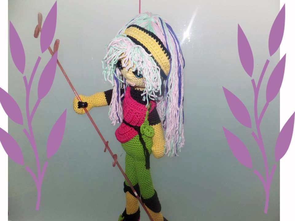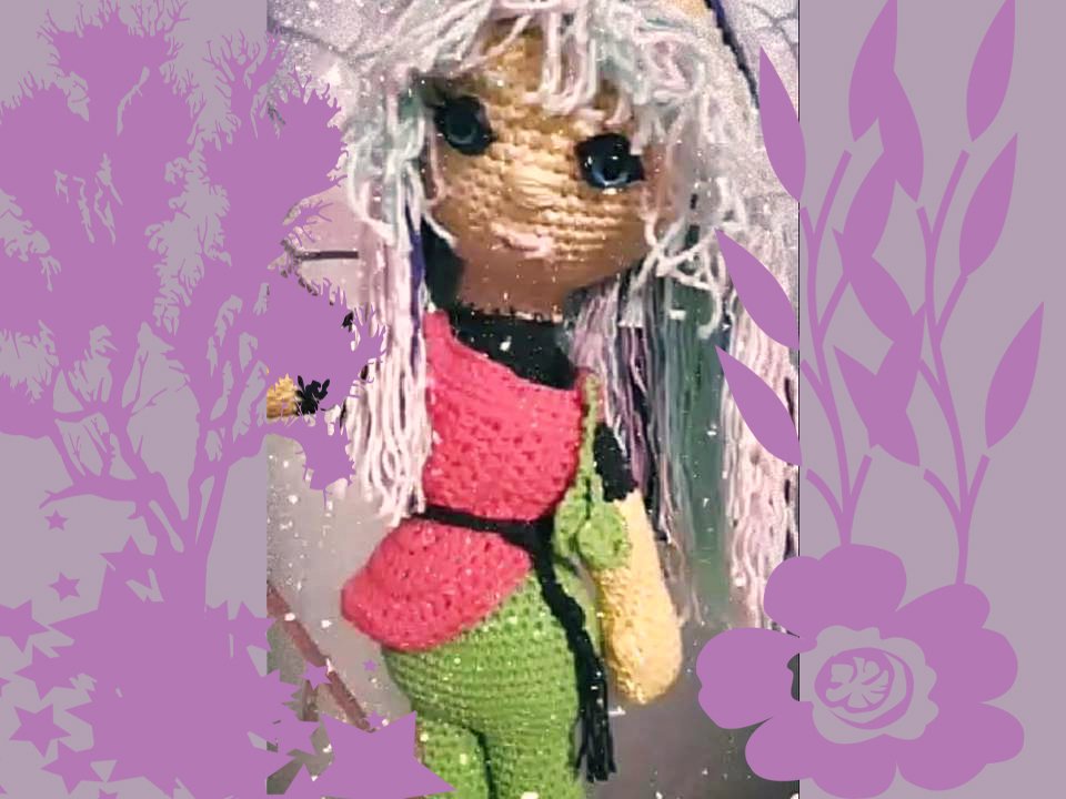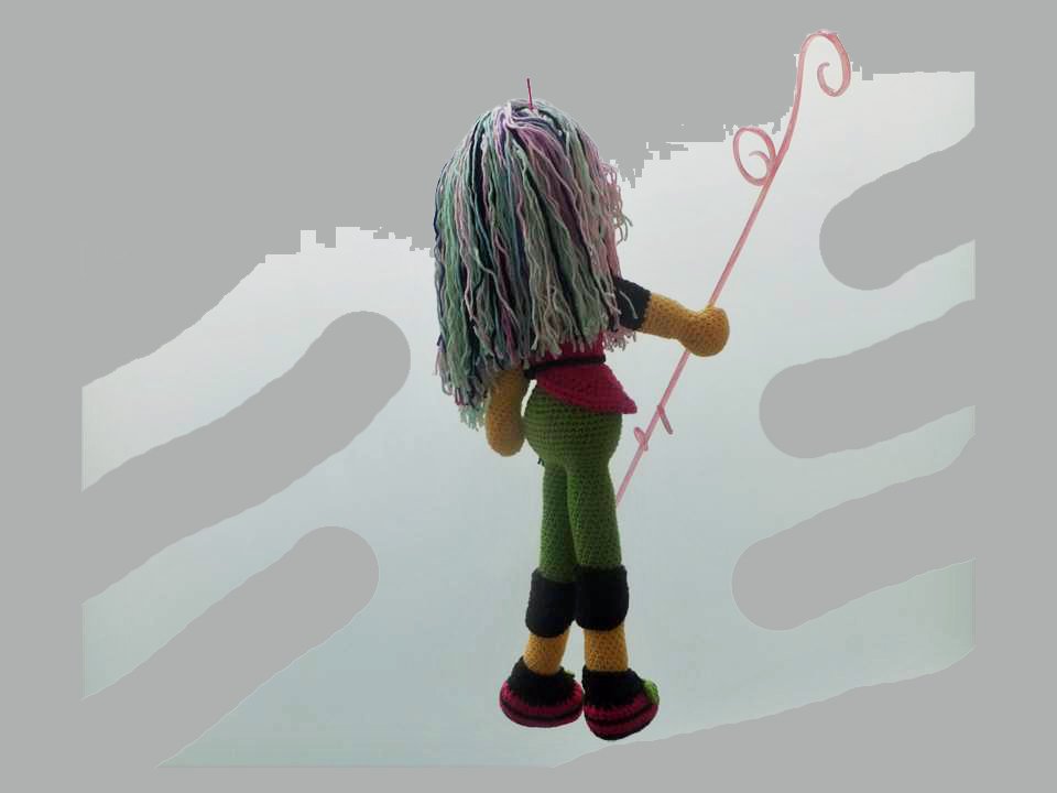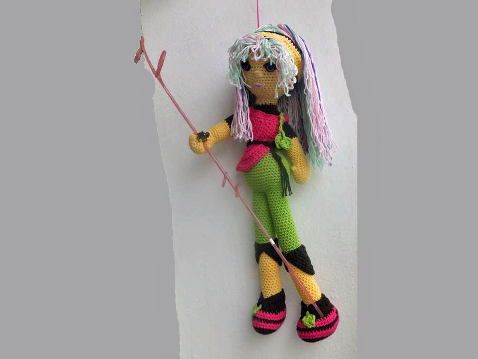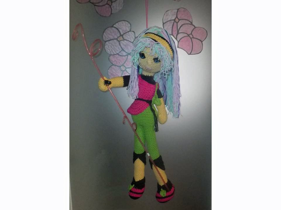 Diese Puppe wird etwa 50 cm groß. (Bei Verwendung gleicher Wolle, Abhängig auch von Deiner Häkelfestigkeit)