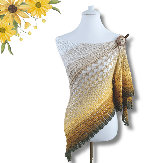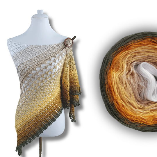 Für das Tuch wurde Bobbel "Gänseblume" von Lieblingswolle verwendet. 1000LL 3Fädig und mit