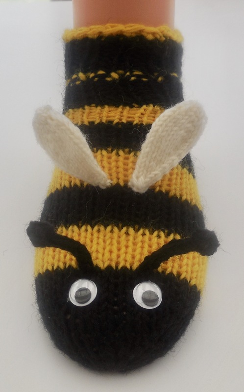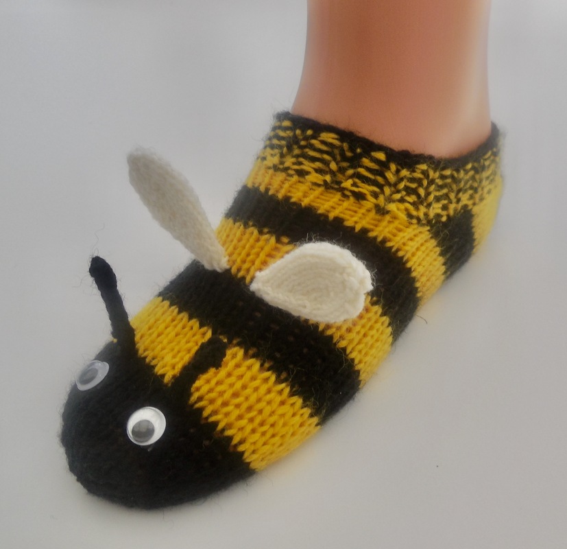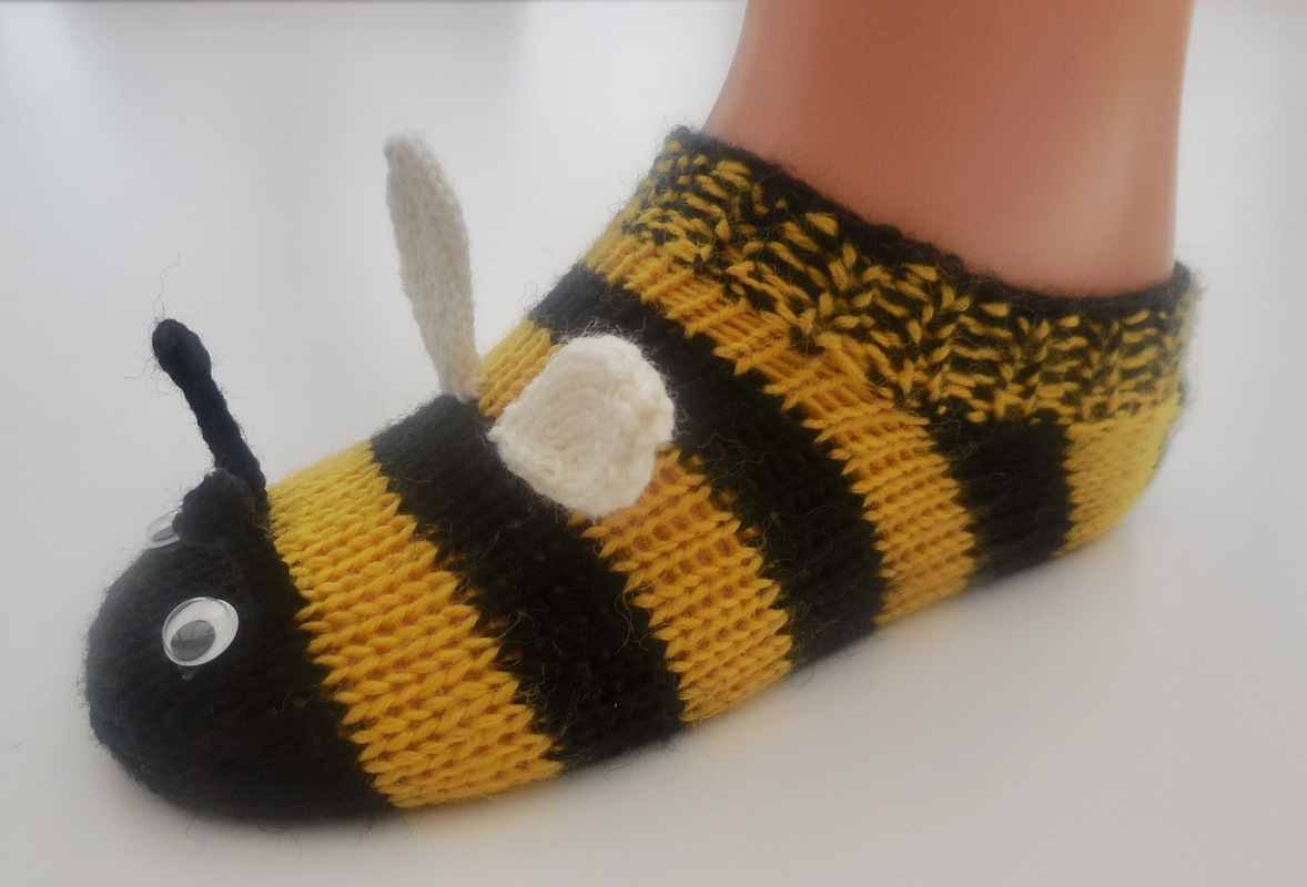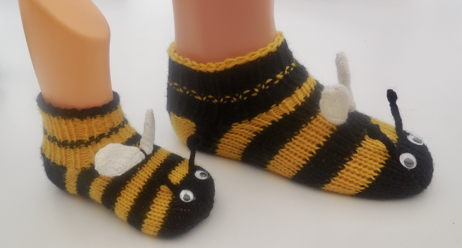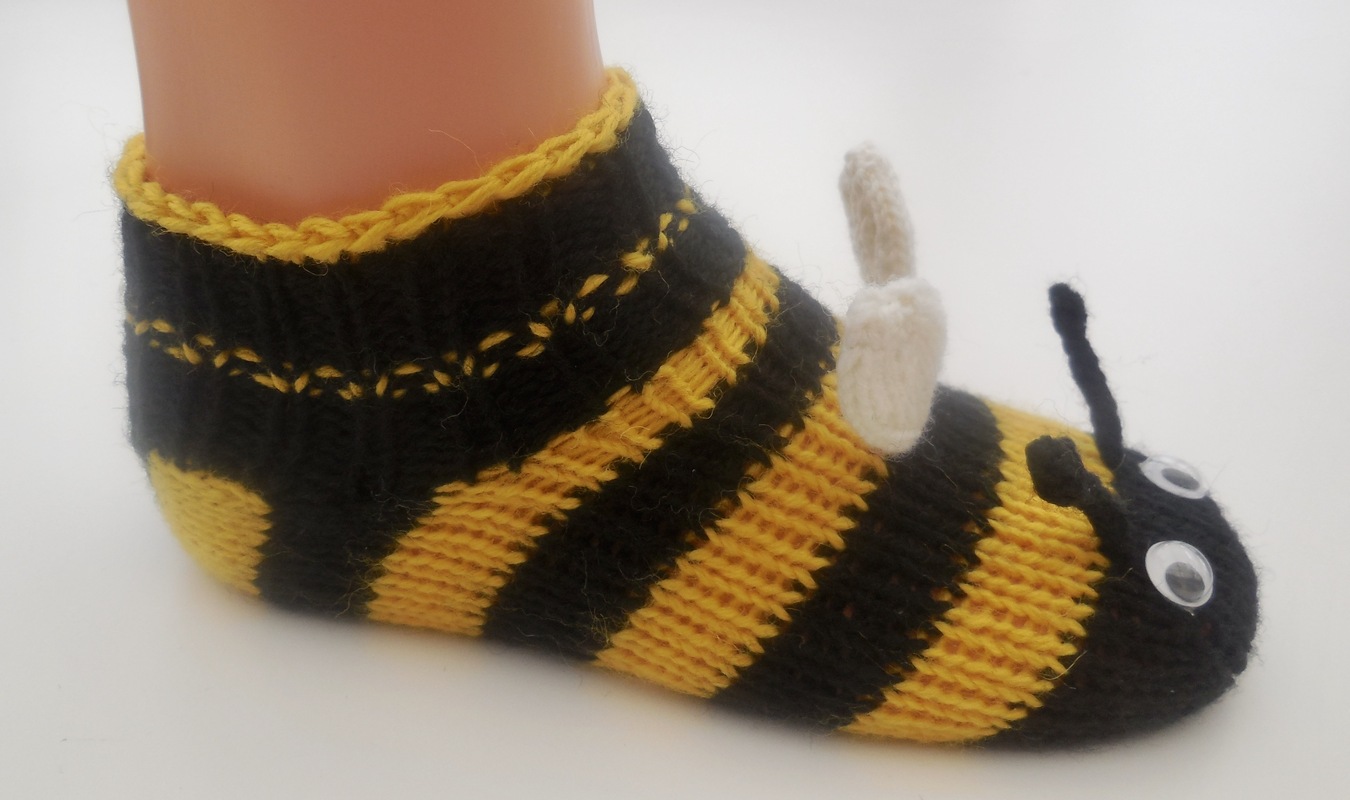 Diese niedlichen Bienensöckchen/Sneakers sind nicht allzu schwer nachzuarbeiten, wenn man das Stricken mit einem Nadelspiel beherrscht.