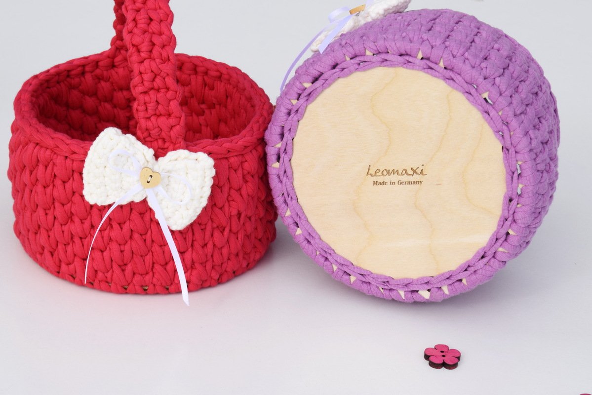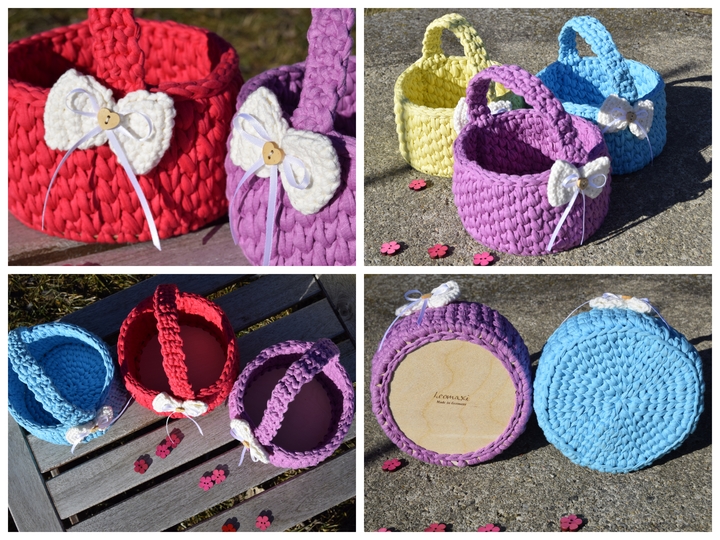 Das neue Osterkörbchen ROMANTICA ist ein schönes Geschenk und eine schöne Dekoration, nicht nur für die Osterzeit. Durch das spezielle Muster und den stabilen Boden ist der Korb besonders robust, steht gut und bietet genug Platz für Süßigkeiten, Pflegeprodukte und andere kleine Kostbarkeiten. Für Kinder kann sich auch ein kleines Plüschtier, wie ein Häschen im Körbchen verstecken. Nach Ostern kann er als Utensilo zum Einsatz kommen. Denn es passt gut ins Badezimmer, Flur, Wohn- oder Kinderzimmer. Von meinen Kunden erfahre ich, dass meine Osterkörbchen oft im Kaufmannsladen, der Kinderküche oder als passende Ergänzung für Kostüme zum Einsatz kommen.