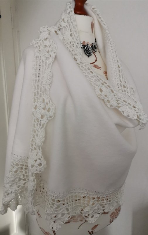 Eine wärmende Stola im Materialmix Vliesstoff und Glitzerbobbel mit Perlen.