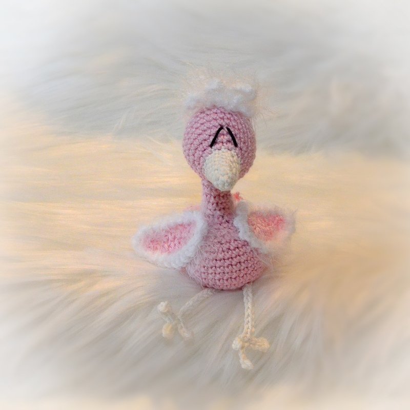 Der Kopf mit Schnabel wird in einem Stück gehäkelt, der Körper separat.