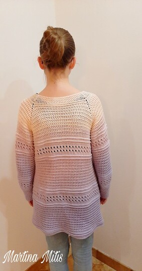 Gr. 34/36 Martina: mit einem 4-fädigen Modal Bobbel, 1350Meter, je 380Meter pro Ärmel NS 3,5