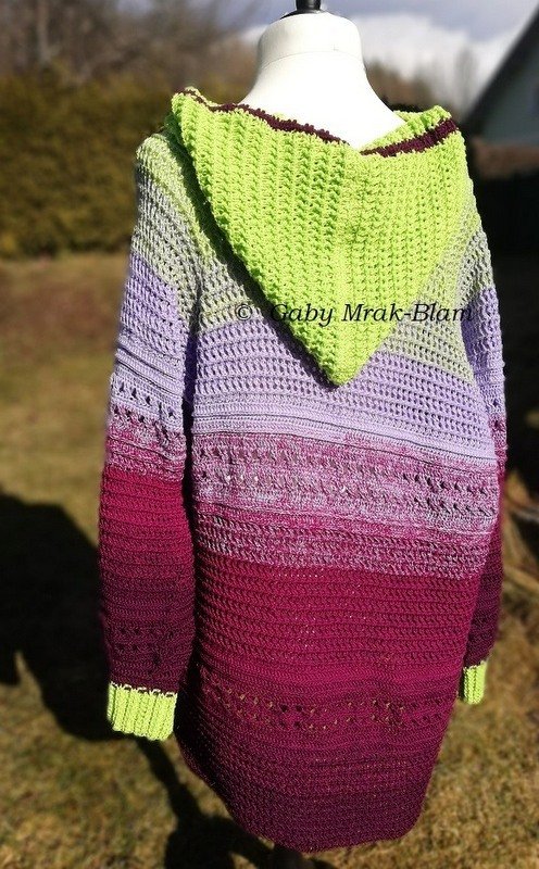 BITTE bedenkt bei den Wollangaben, dass jeder Körper anders ist und jeder anders häkelt oder andere Wolle verarbeitet. Diese Jacke hat viele Variationen und der Wollverbrauch ist dementsprechend mehr oder weniger.