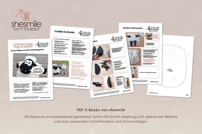 PDF-E-Books von shesmile: Diese leicht verständliche Schritt-für-Schritt-Anleitung mit vielen Fotos ist auch für Nähanfänger geeignet, denn die sehr ausführliche Fotoanleitungen begleitet dich bei jedem Schritt.