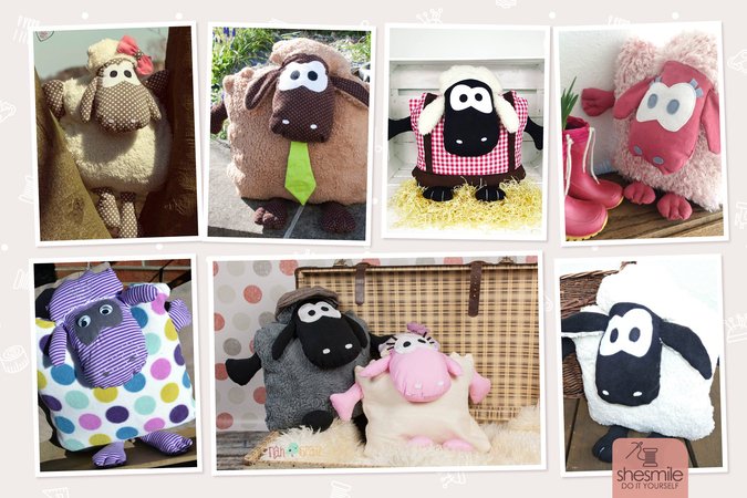 Hallo! Wir sind‘s, Sepp & Sibylla, die Schafkissen. Näh uns aus einem alten Pullover, Strickkleid, oder kuscheligem Plüsch- und Fellstoff. Auf dem Rücken haben wir einen Reißverschluss. So kann man uns als praktischen Kissenbezug nutzen. (Alternative Verschlussmöglichkeiten sind Druckknöpfe oder ein Hotelverschluss. Das wird aber nicht im E-Book beschrieben.) In unseren Bauch passt ein 40 x 40 cm Füllkissen oder Füllwatte.