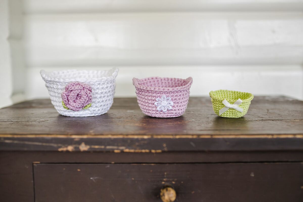 Häkelanleitung für ein kleines Deko-Obstkörbchen, gehäkelt aus festen Maschen.