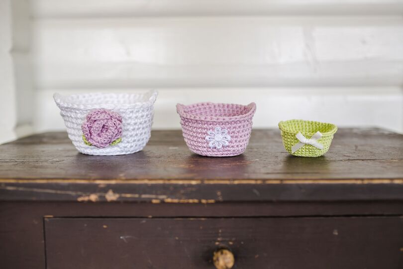 Sehr süß als kleines Mitbringsel oder als kleiner Ostergruß für liebe Menschen (eventuell gefüllt mit Pralinen oder Gästeseifen) oder aber auch einfach nur als Deko (gefüllt mit Mini-Häkelobst).