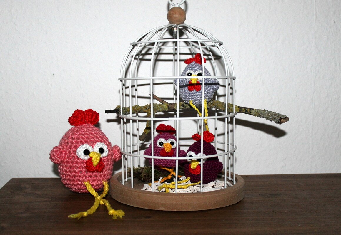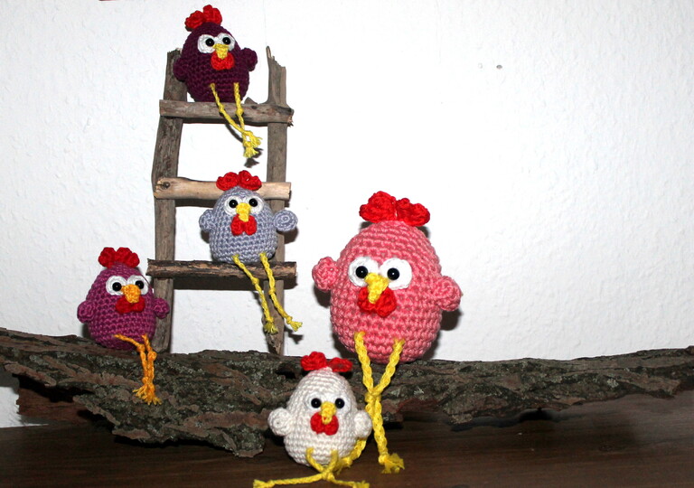 Die fertigen Hühnchen sind ca 6 cm (ohne Beinchen) / 12 cm groß.